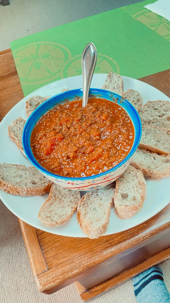I am still learning to cook and make edible creations at my tender age of 60ish next month. I make bolognèse with lean ground meat every Friday now. I was never allowed in Dennis’s kitchen while cooking for the family. Then I kept watching him from the cheap seats at the kitchen table, make this fabulous Italian dish for us every Friday and it was time-consuming. It was taking him away from his work in the home office. I just wrote the recipe down and asked if I could try it in the meal prep not just clean up. After many months, he relented and gave me the chopping block and sharpened knives, hovering over me while checking every chop or measurement I was making. I guess I passed as I am now his Sóus Chef along with all the accoutrements, to his Chef! Just like on the show “The Bear”, and on @MattMatheson’s YouTube who is a real Chef, and you should check him out too.